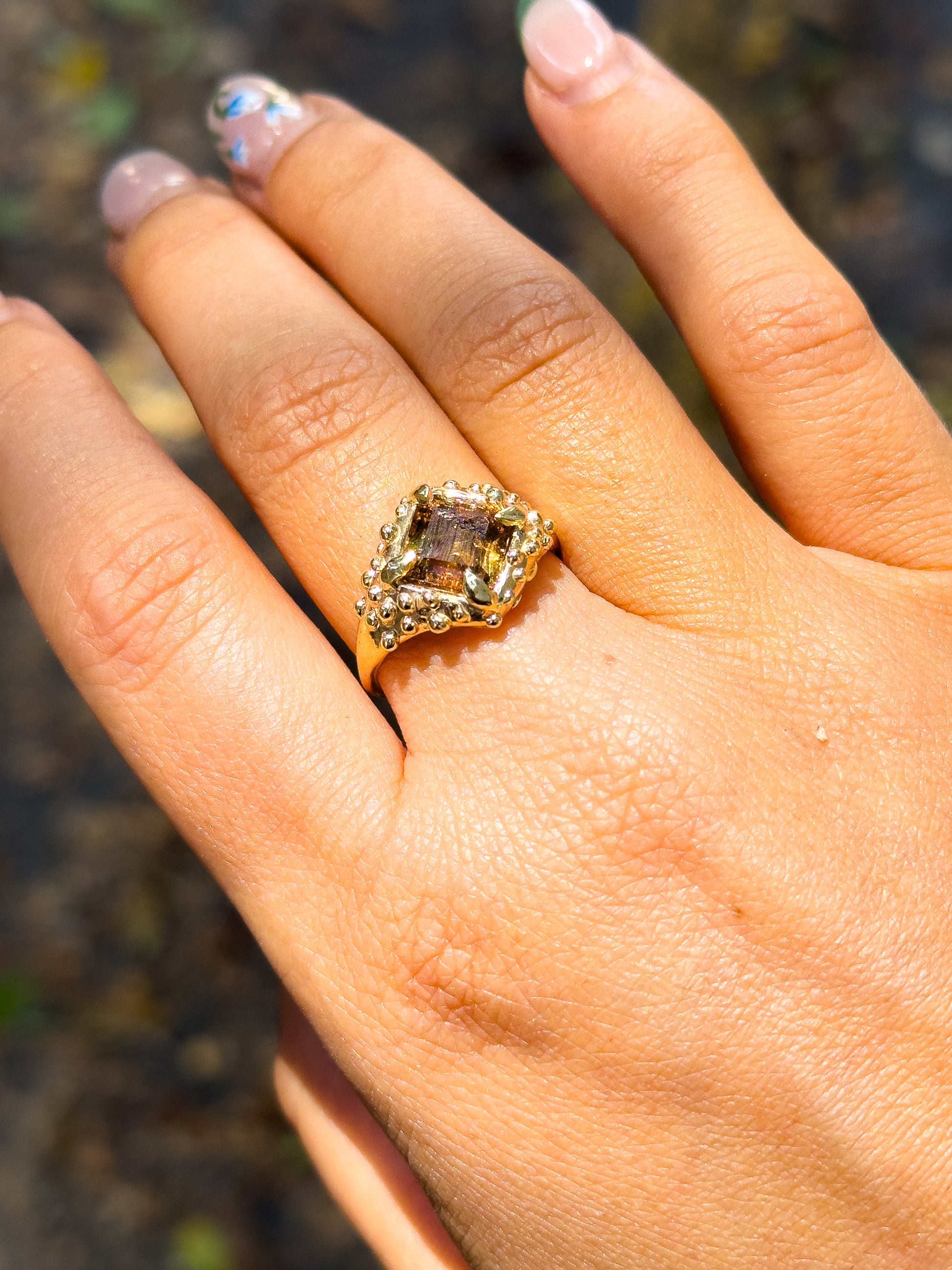 By choosing this ring, you are investing in a piece of personalized luxury, meticulously brought to life through a long process of artistic craftsmanship. From the initial design sculpted in wax to the careful selection of ethically sourced gemstones, each step is performed by hand, ensuring a bold and timeless design that speaks to your authentic self. This ring is more than just jewellery; it's a connection to the artistry and a piece to cherish for a lifetime.