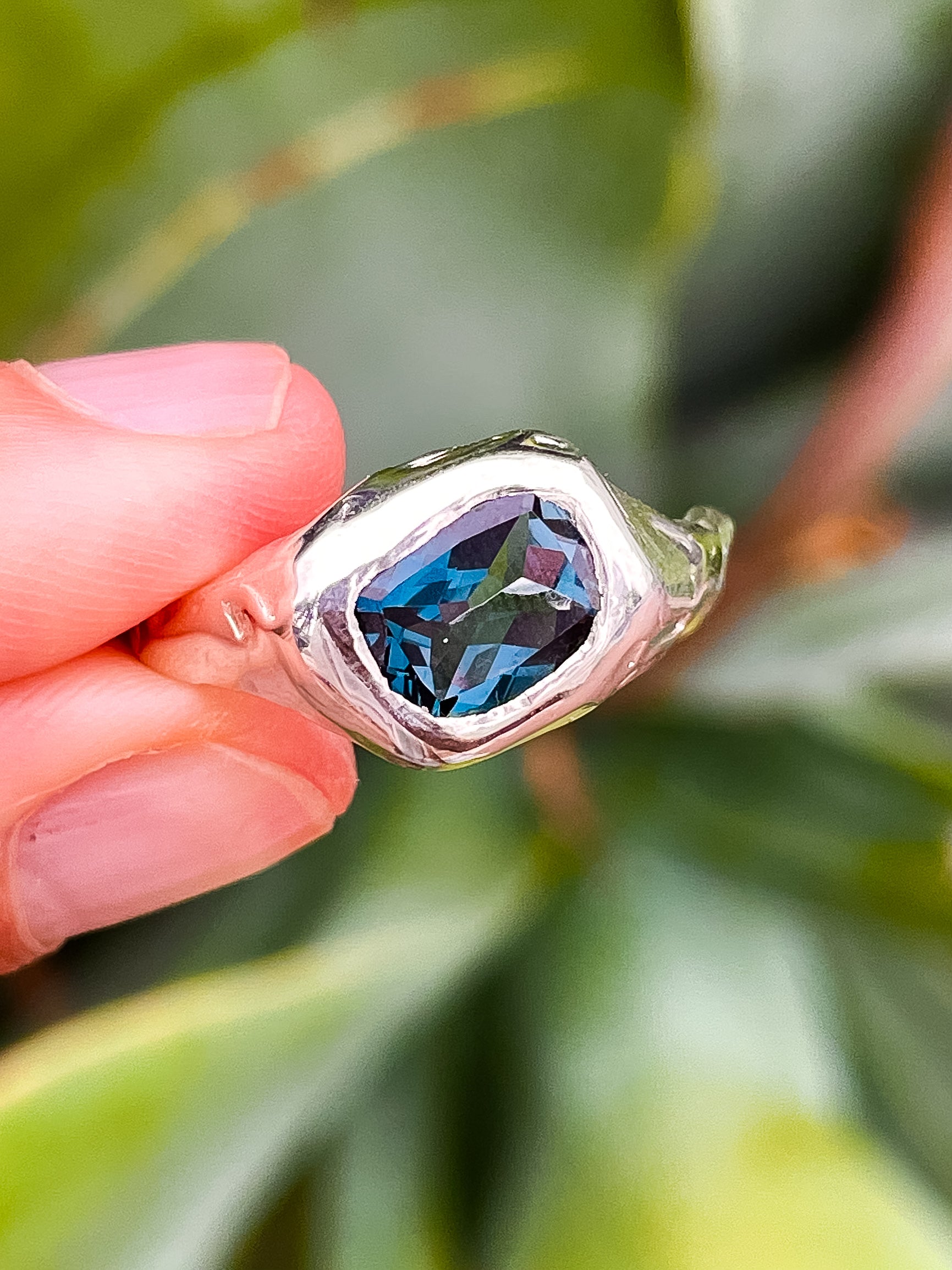 Sterling silver set with a deep London Blue Topaz.